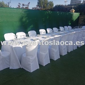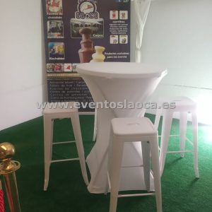 Nuestras mesas son robustas y fáciles de instalar, proporcionando una solución cómoda para el montaje rápido en interiores y exteriores. También disponemos de mesas altas, ideales para zonas de cóctel, ofreciendo una opción más informal y elegante para tus invitados.