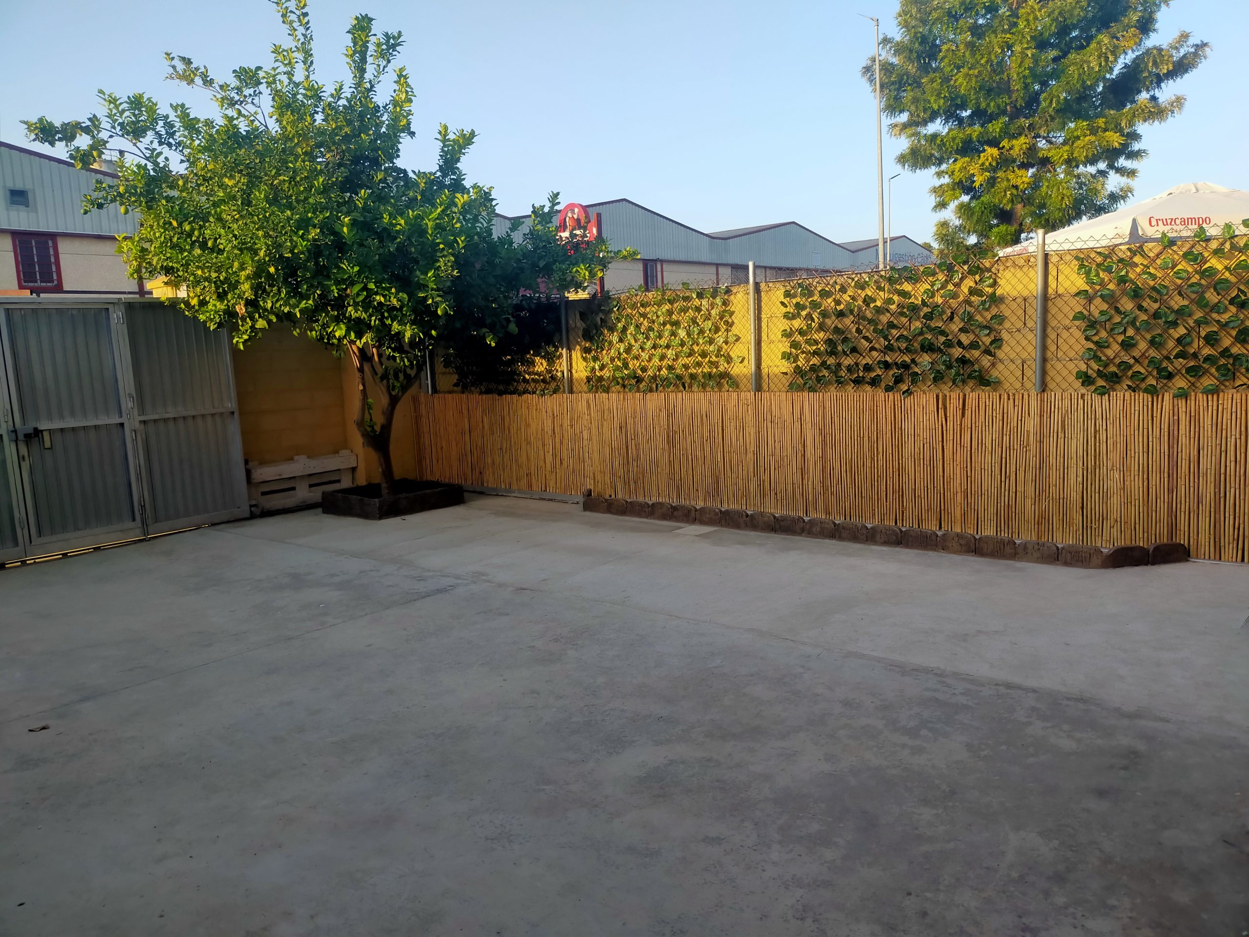 - Patio trasero exterior de 35 m²: otra zona más para despejarte al aire libre. En este patio hemos incluido iluminación mediante guilnardas para darle un toque más especial.
